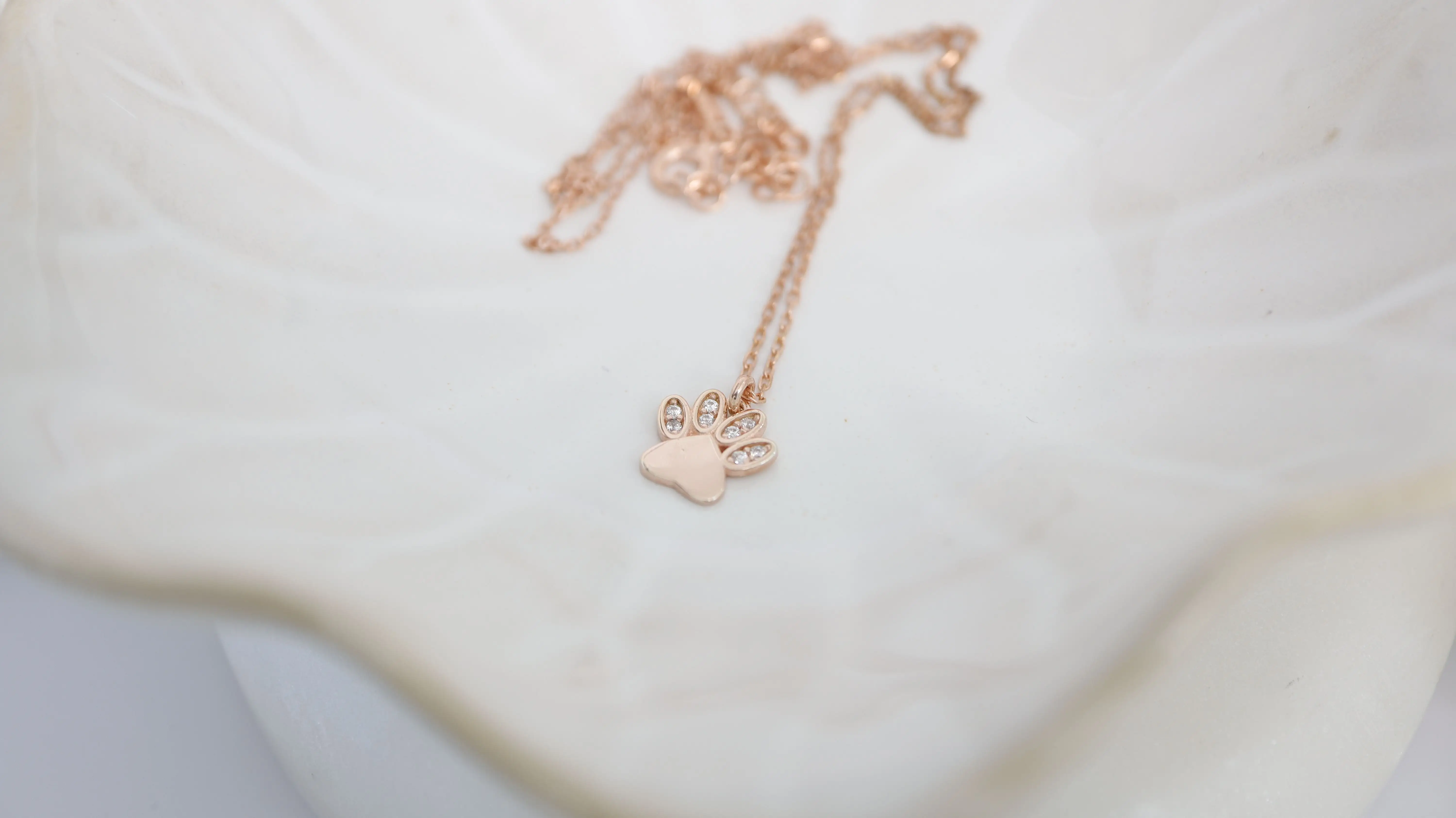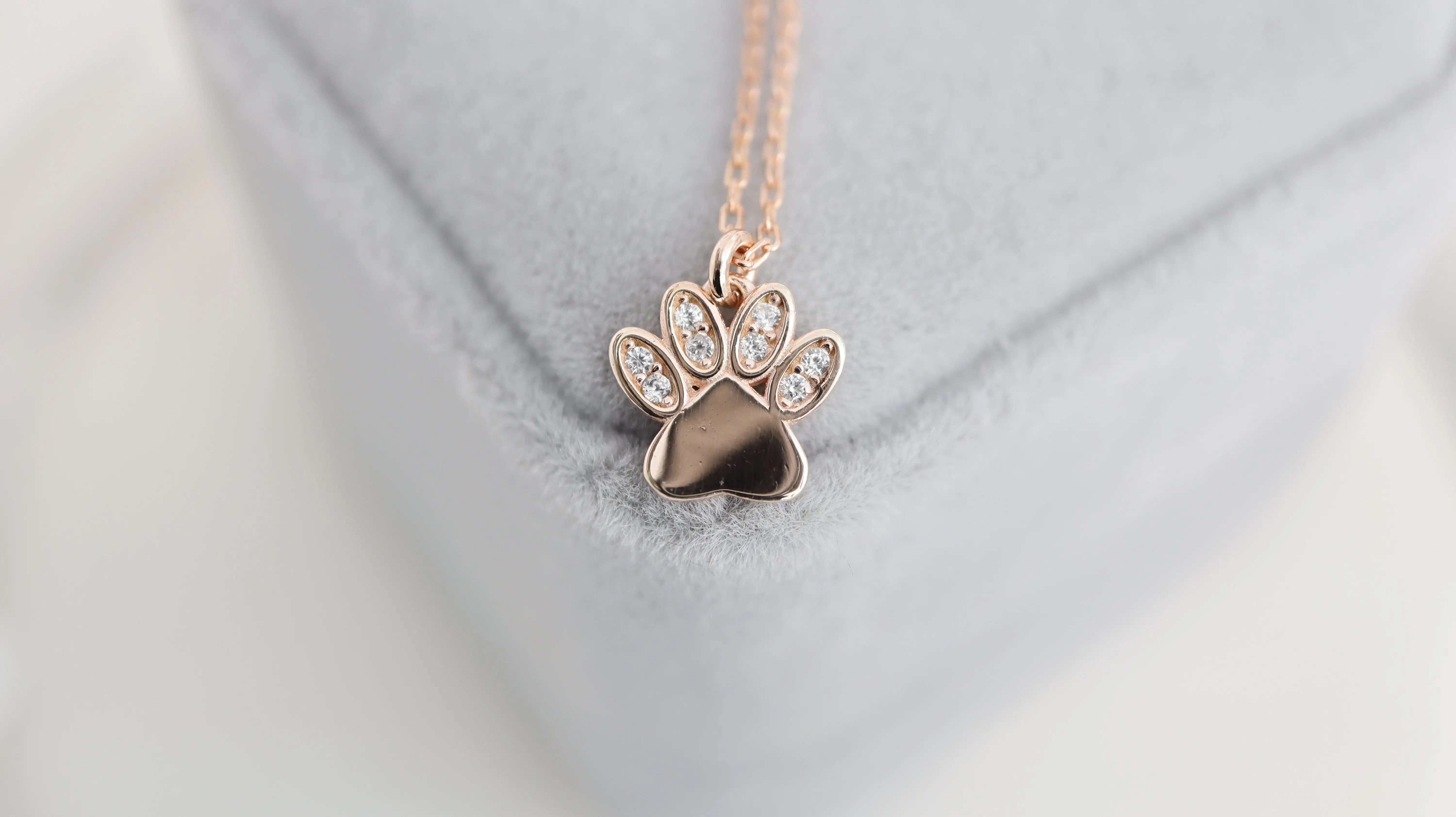 Tauchen Sie ein in die verspielte Eleganz unserer "DogPaw" Halskette, deren zartes Silber mit einem Hauch von Roségold veredelt ist und den perfekten Rahmen für den bezaubernden Anhänger in Form einer Hundepfote bildet. Diese liebevolle Hommage an unsere treuen Begleiter ist kunstvoll gestaltet, mit funkelnden Zirkonia-Steinen geschmückt, die bei jedem Lichtstrahl sanft glitzern und Ihren Stil mit einem Hauch von Zuneigung und Eleganz bereichern.
