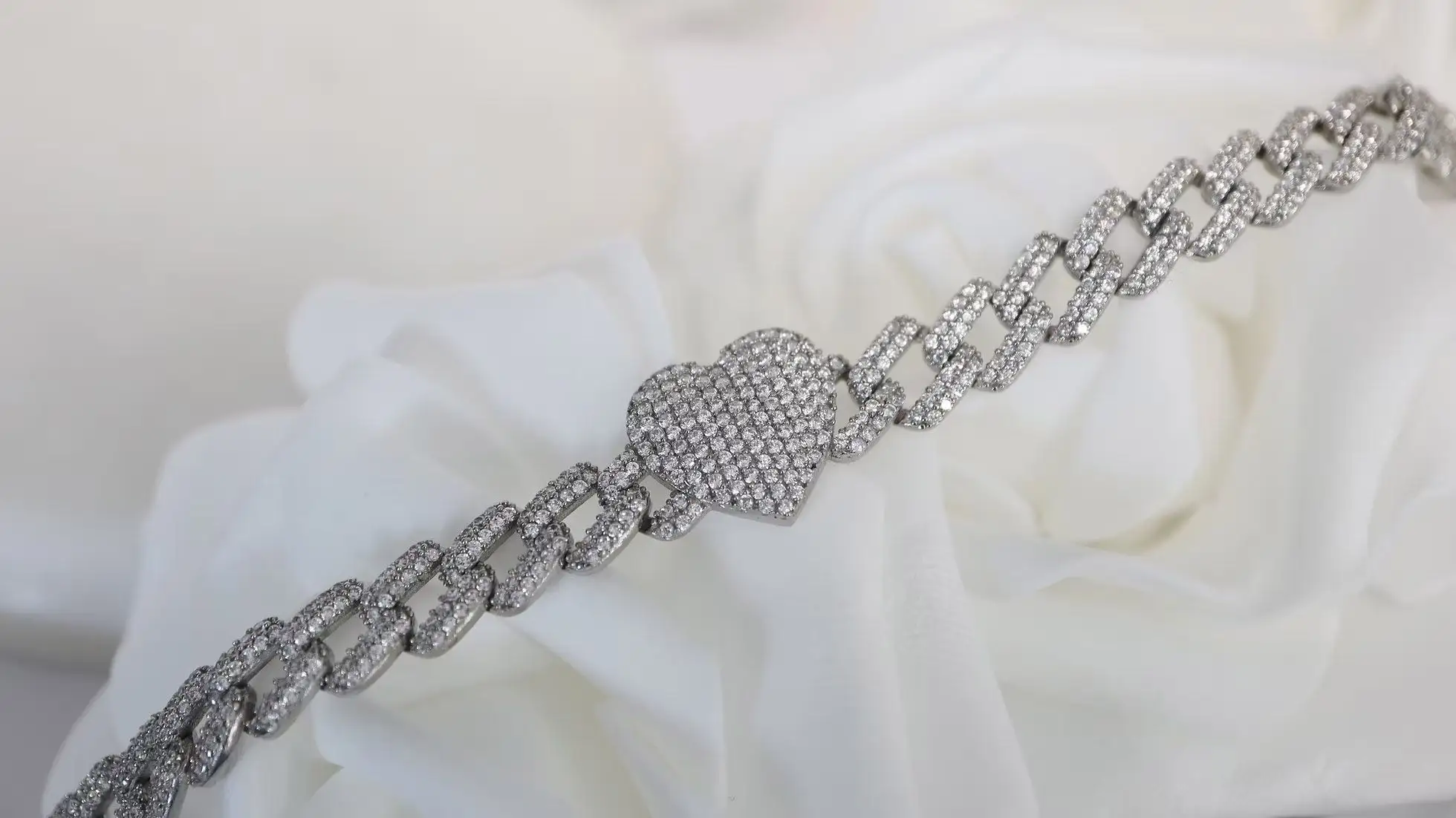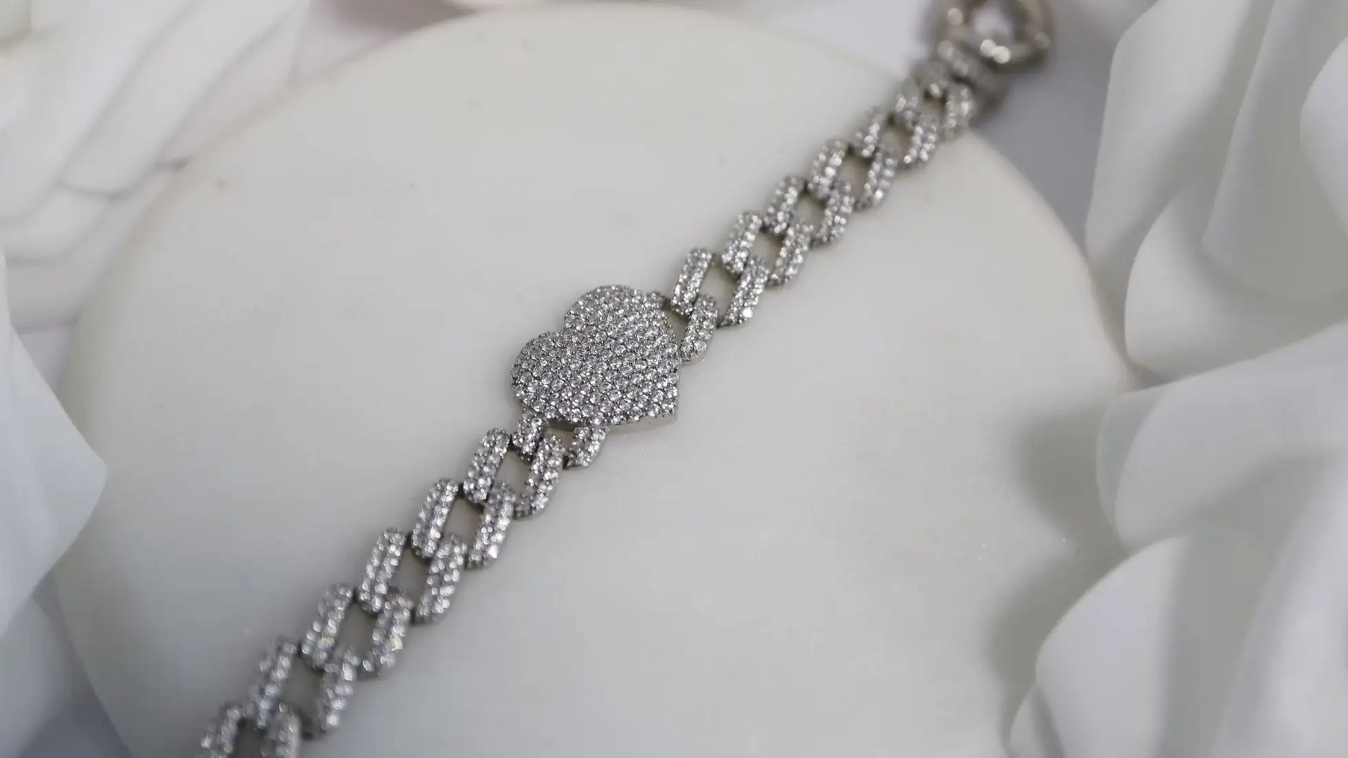 Herz-Zirkonia Silberarmband Damen