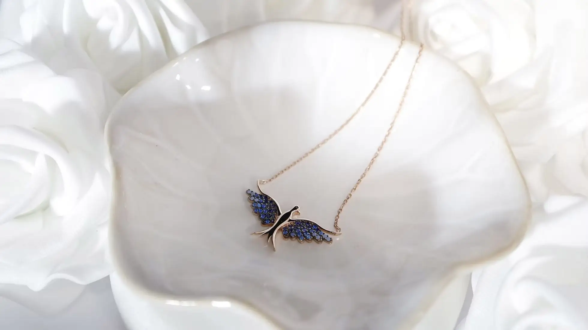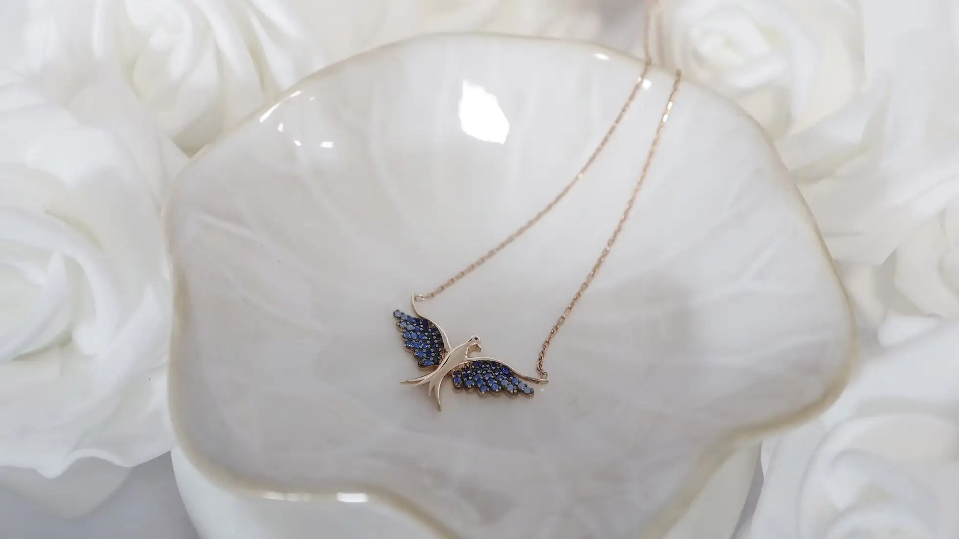 Entdecken Sie die Anmut und Eleganz unseres Rose Avian Halsketten. Dieses exquisite Schmuckstück vereint die zeitlose Schönheit von Silber mit dem glamourösen Glanz von Roségold. Der Anhänger, ein zartes Vogelmotiv in Roségold, fängt die Fantasie ein und symbolisiert Freiheit und Leichtigkeit. Die Federn des Vogels werden durch eine Mischung aus hellen und dunklen blauen Edelsteinen dargestellt, die dem Anhänger eine faszinierende Tiefe verleihen. Diese Halskette ist nicht nur ein Schmuckstück, sondern auch eine Aussage über Stil und Eleganz. Tragen Sie sie mit Stolz und lassen Sie sich von ihrer Schönheit verzaubern.