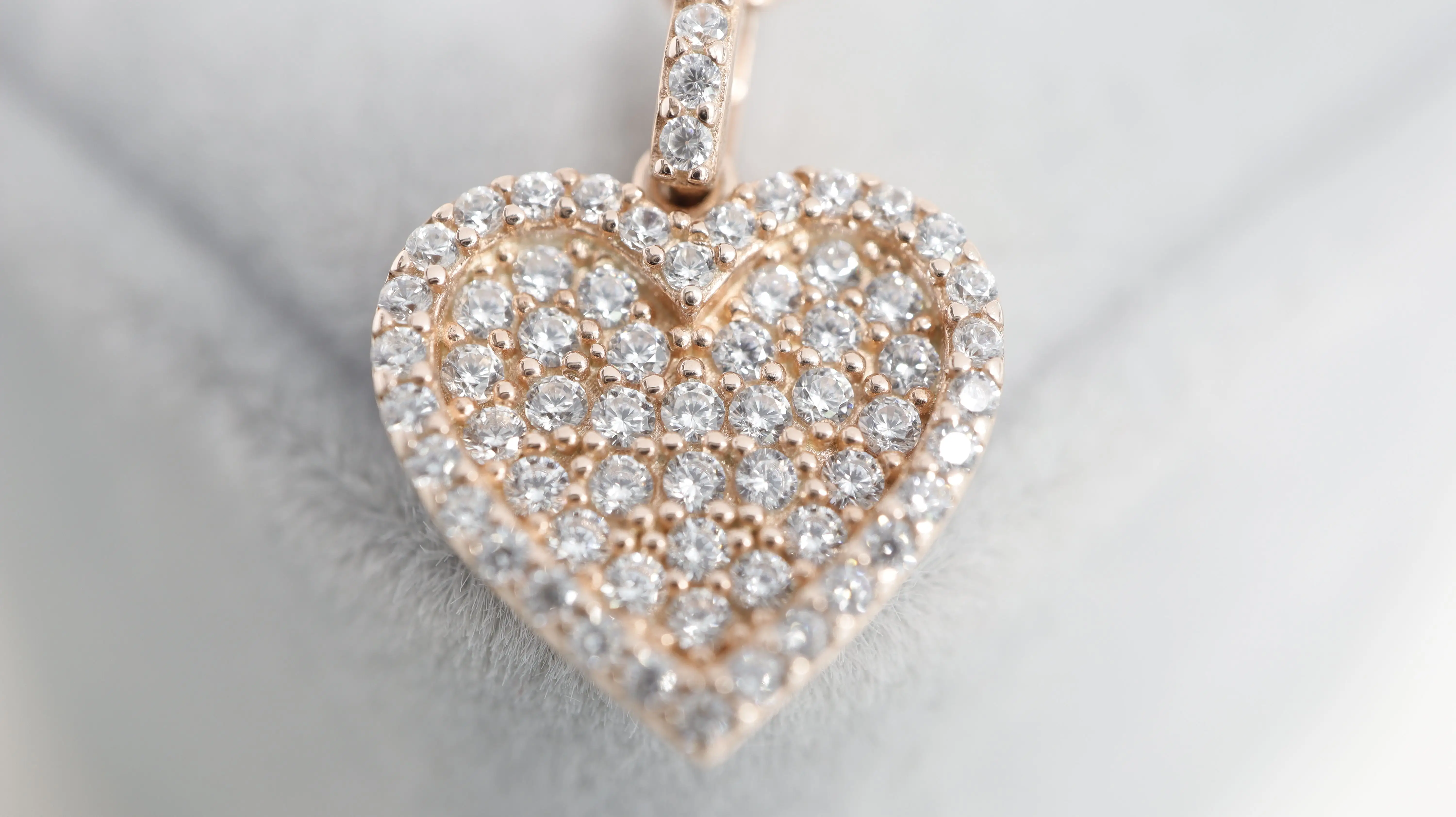 Erleben Sie die schimmernde Eleganz unserer „Rosé-Herzschlag“ Halskette, deren zartes Roségold den strahlenden Hintergrund für den atemberaubenden Herzanhänger bildet, vollständig mit funkelnden Zirkonia-Steinen besetzt, die bei jedem Lichtstrahl sanft leuchten und Ihrem Look einen Hauch von Romantik und Glamour verleihen.