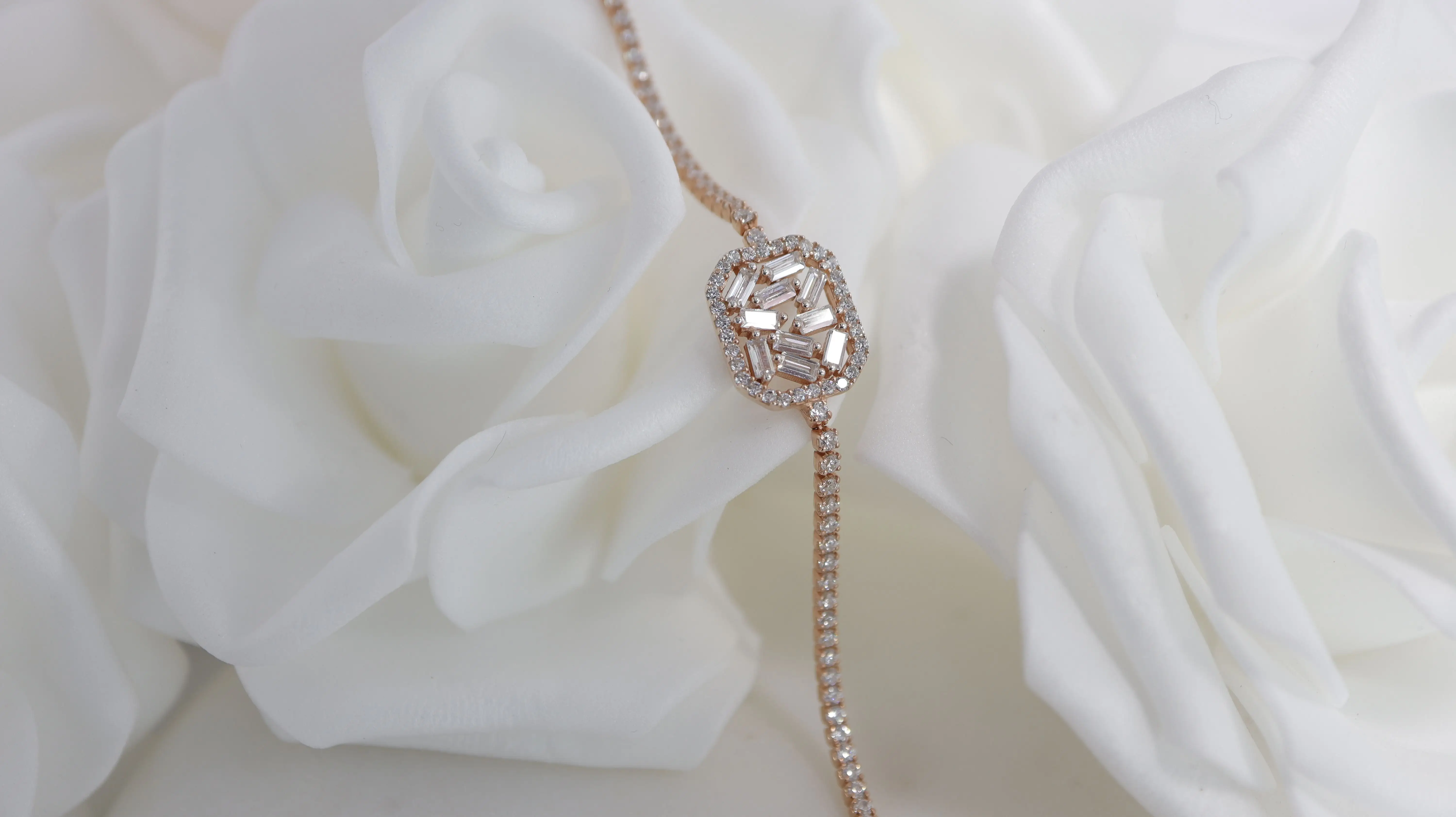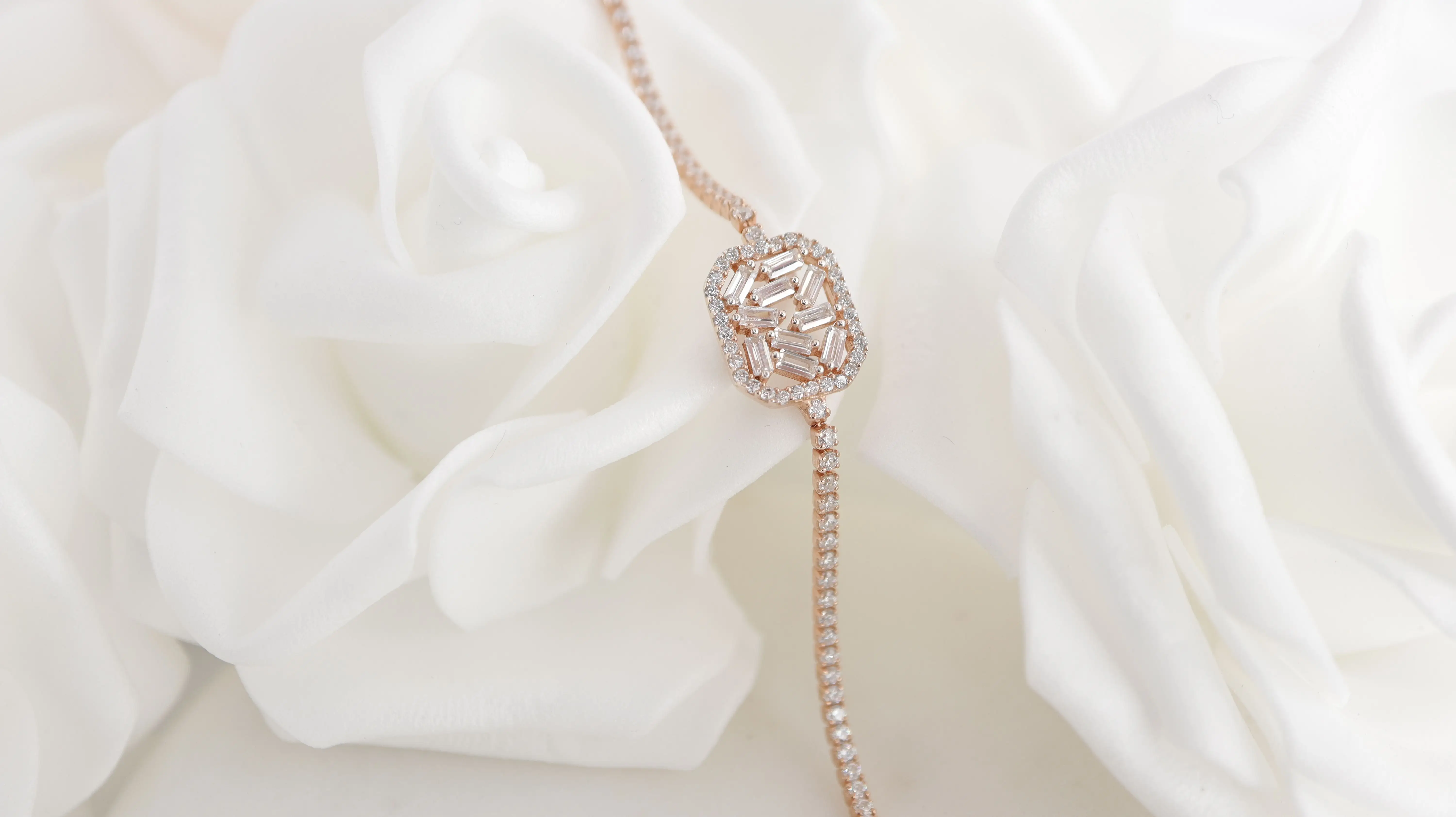 Erstrahlen Sie in der faszinierenden Pracht des Rose Octa Armband, einer funkelnden Hommage an zeitlose Eleganz. Jeder Zirkonia-Stein fängt das Licht ein und verleiht Ihrem Handgelenk ein strahlendes Glitzern, während das kunstvoll gefertigte achtseitige Element in der Mitte des Armbands eine elegante und moderne Note verleiht.