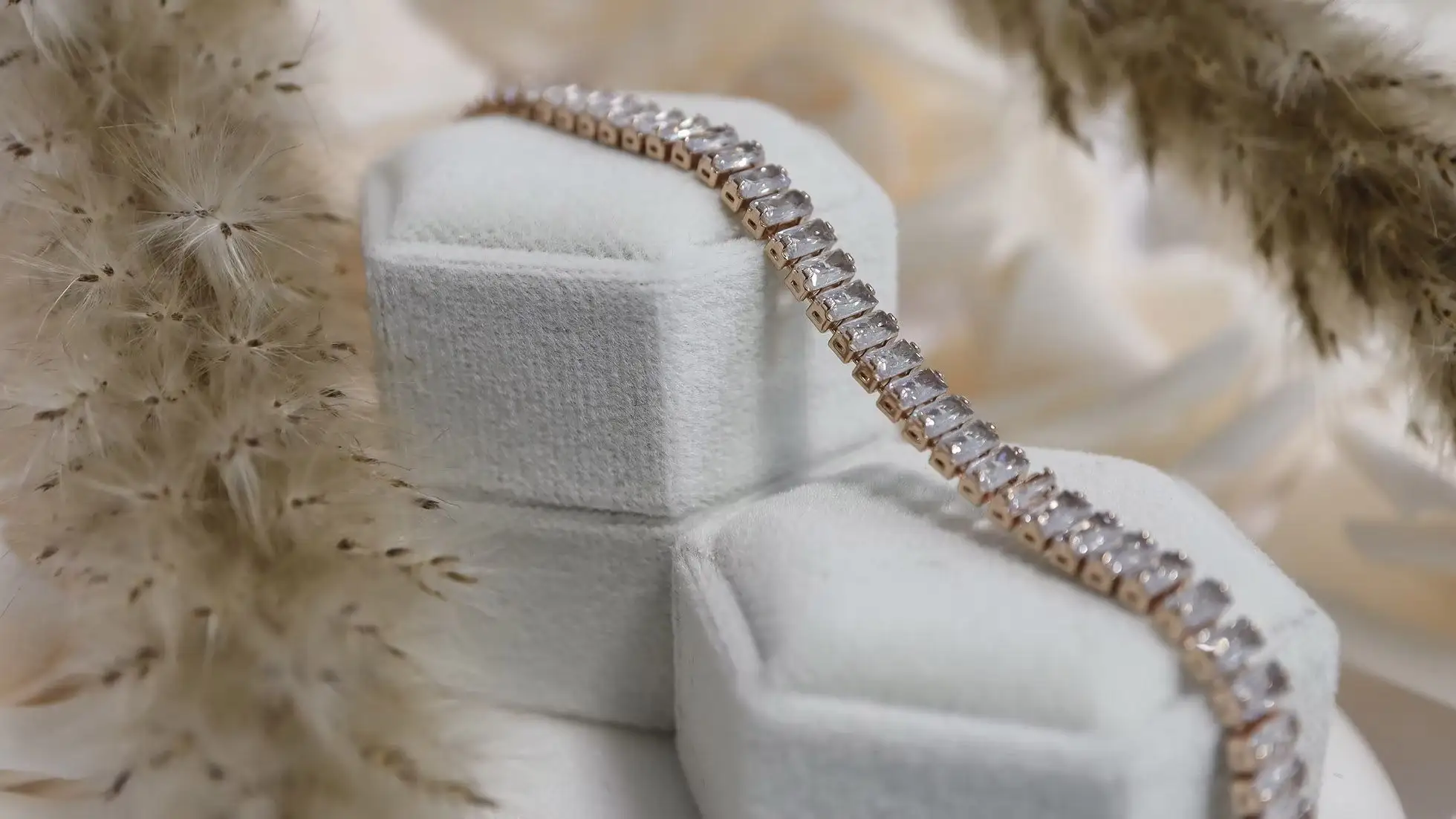 Das Armband strahlt eine unwiderstehliche Anziehungskraft aus und fängt das Licht auf eine zauberhafte Weise ein, die jeden Blick auf sich zieht. Tragen Sie es als Ausdruck Ihres unverwechselbaren Stils und Ihrer raffinierten Eleganz. Egal, ob Sie es zu einem besonderen Anlass oder im Alltag tragen, das „Rosegoldene Cubic Chain“ Armband wird Ihnen unvergleichlichen Glanz und Glamour verleihen.