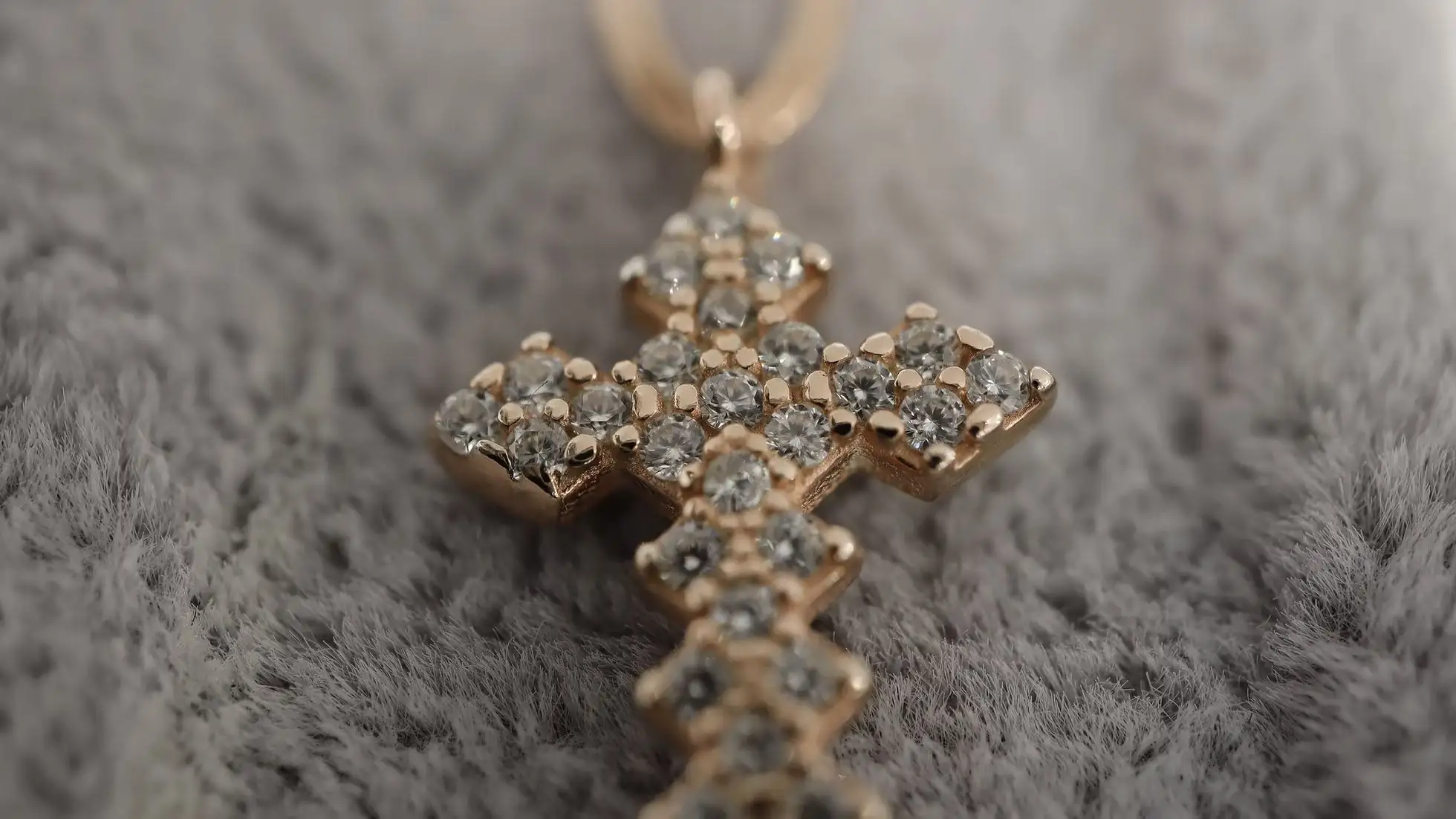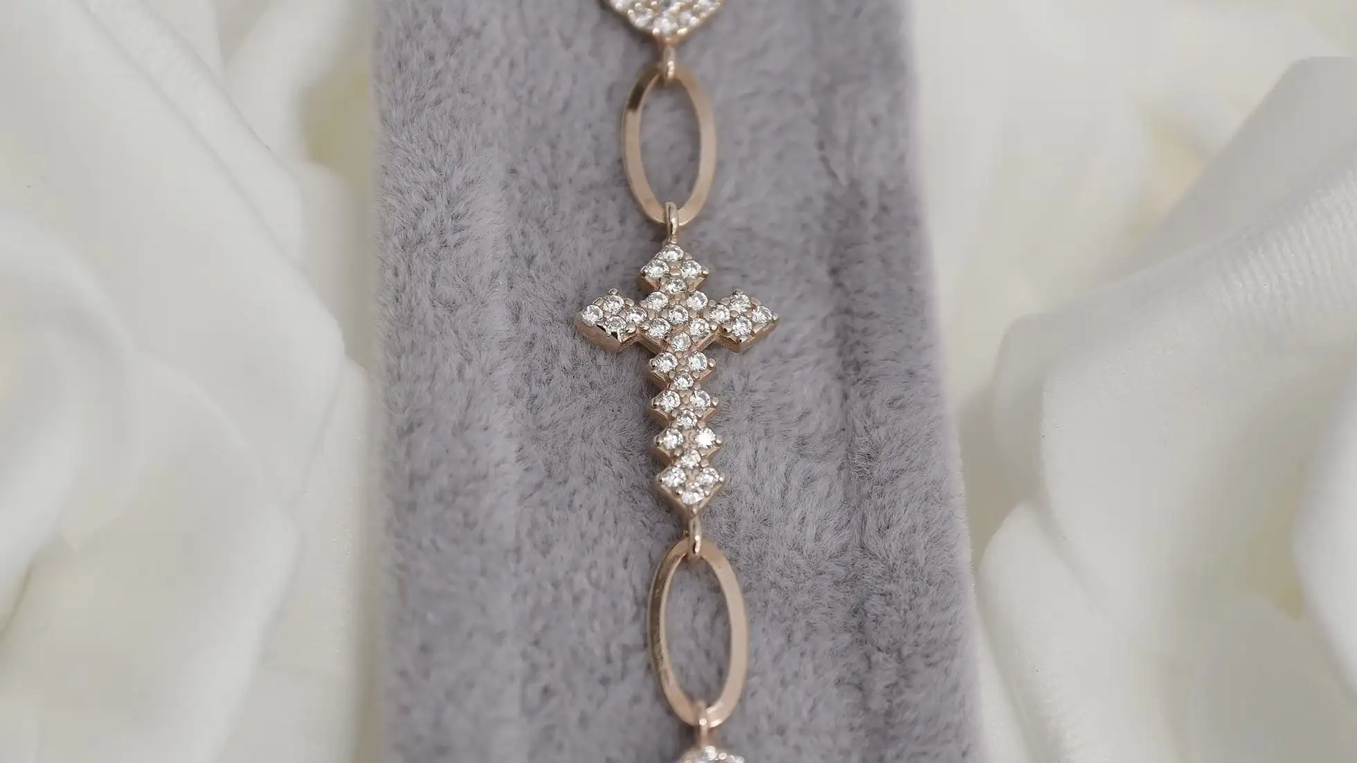 Die 'Rosé goldene Herz-Kreuz' Armkette vereint Anmut und Spiritualität mit ihrem zarten Roségold und funkelnden Zirkonia Steinen. Die romantischen Akzente der zwei kleinen Herzen sowie die zeitlose Eleganz machen sie zu einem unwiderstehlichen Accessoire für jeden Anlass.